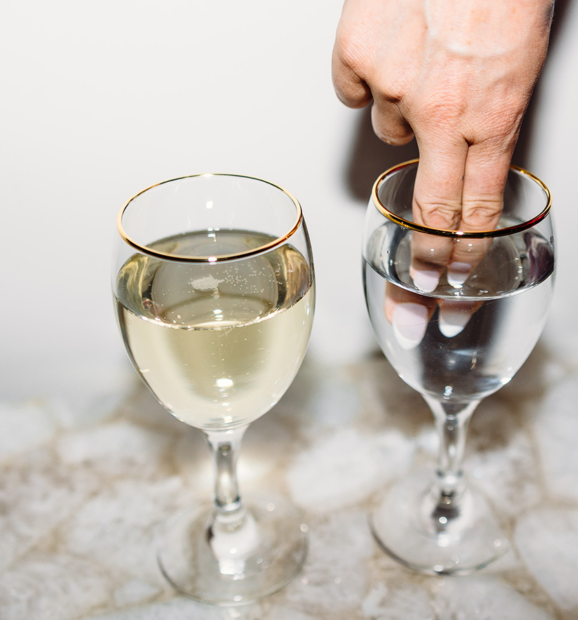 The left glass is regular shower water, filled with chlorine and heavy metals. The right glass is pure, drinkable Clearfilter shower water.